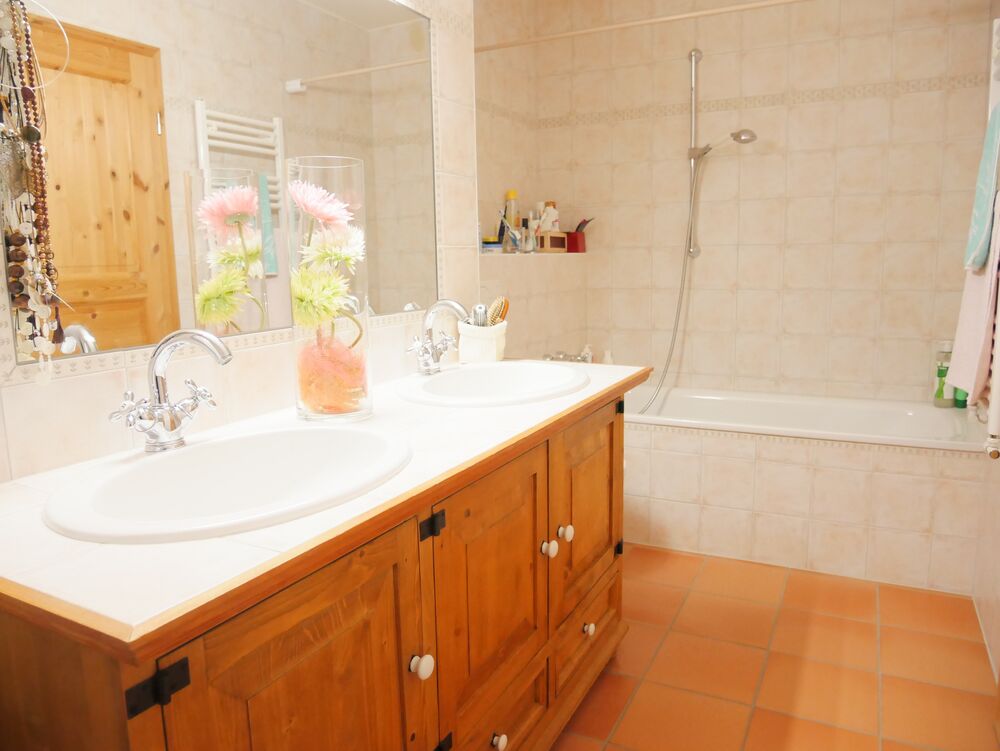 - Salle d'eau, double lavabo et baignoire